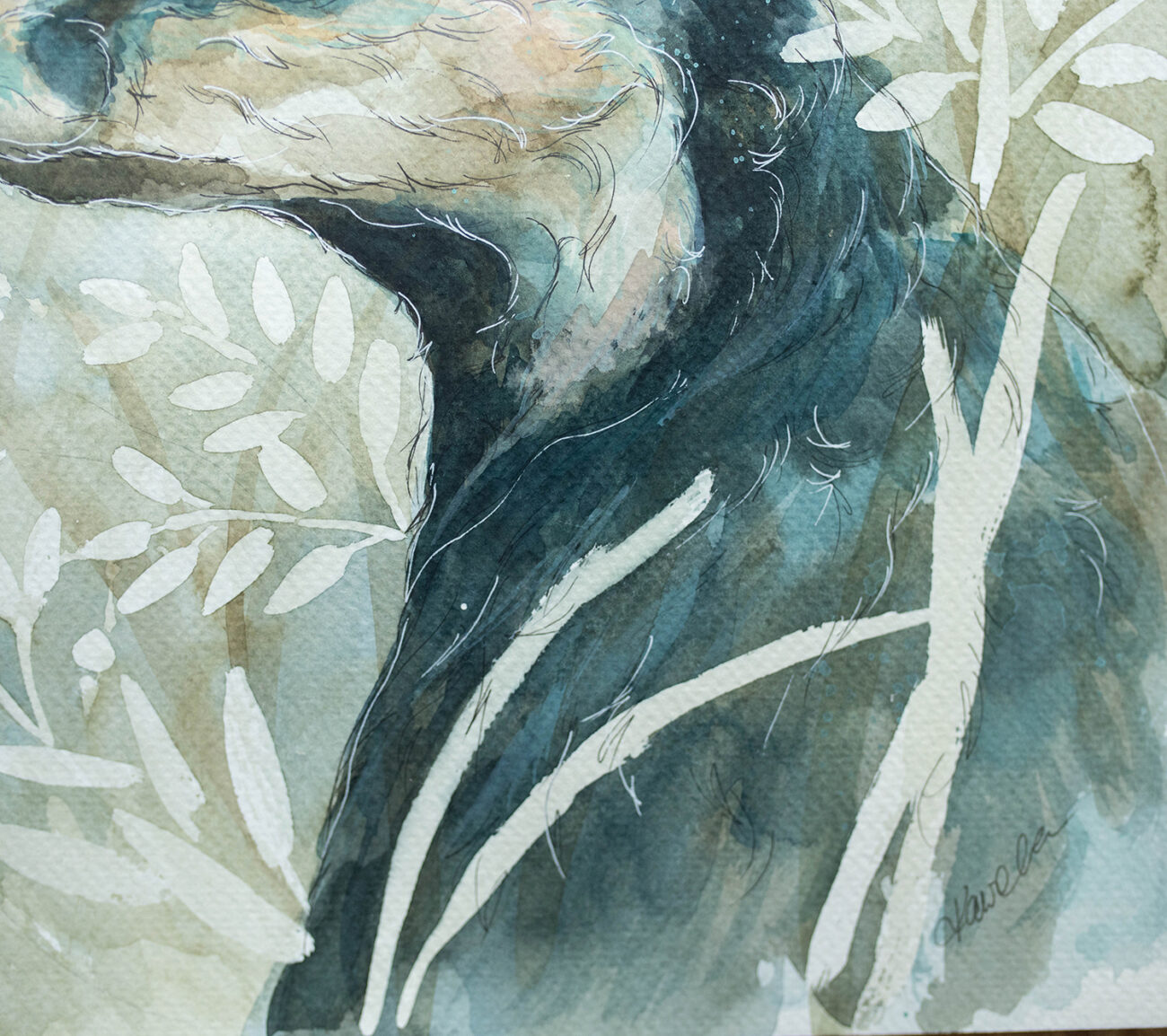 - grafika wykonana akwarelą i cienkopisem na papierze 300 g