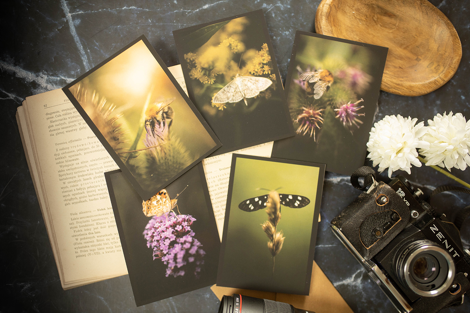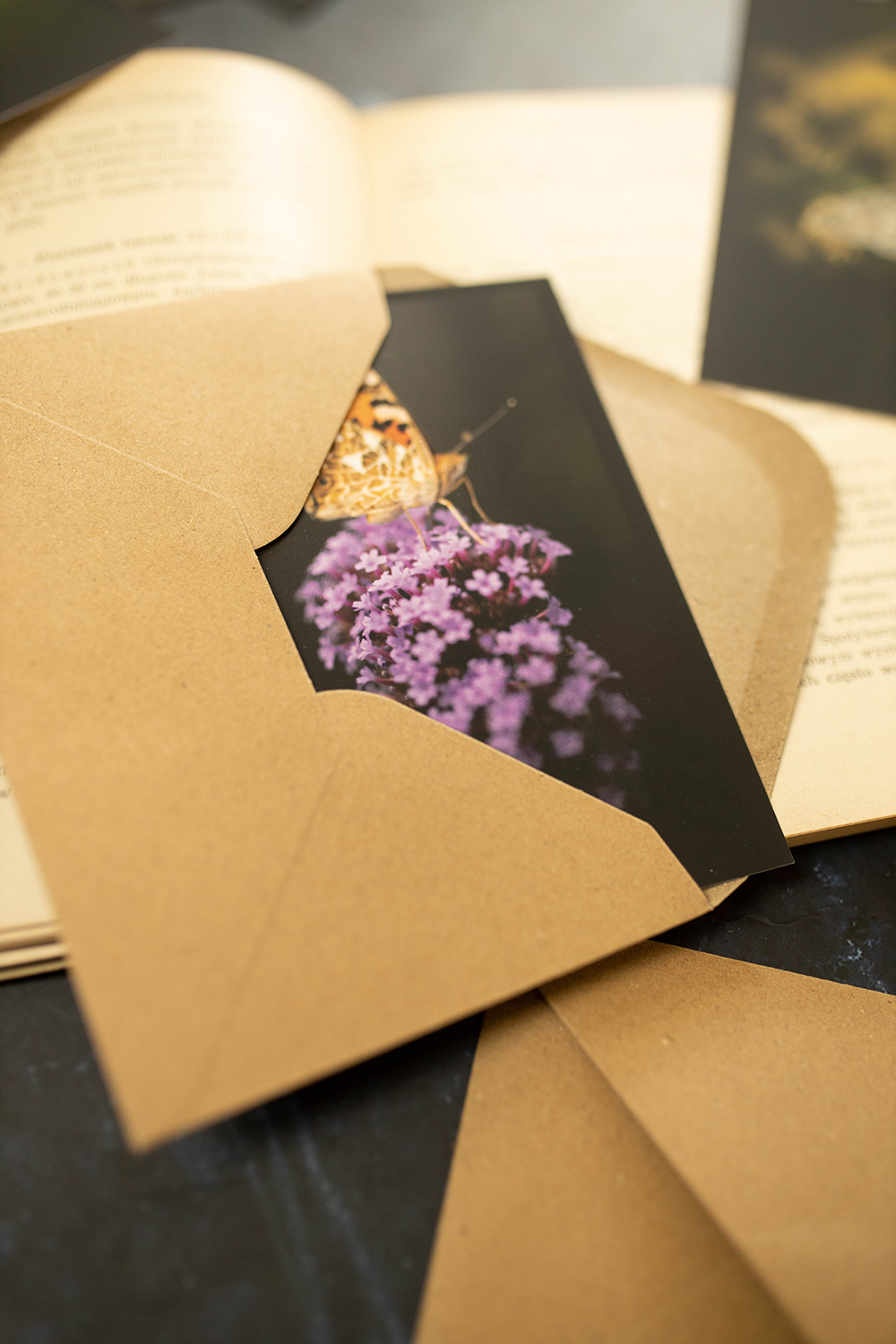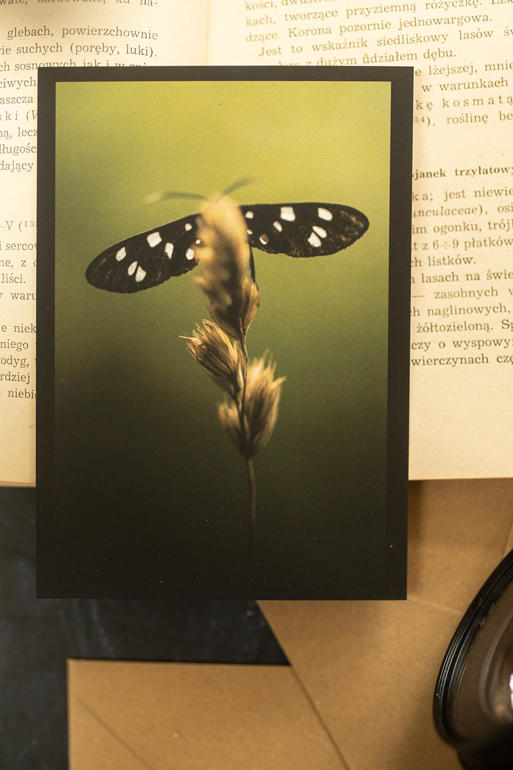 - kartka pocztowa z wydrukiem autorskiej fotografii makro . Zdjęcie zostało zrobione ja jednym ze spacerów po dolnośląskich ścieżkach
